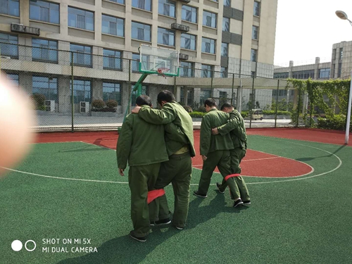 春风带来阵阵蔷薇花香,明媚的阳光洒在篮球场上,病员们摩拳擦掌,跃跃欲试。首先是绑腿接力赛,病员们都铆足了劲,有的配合欠佳,走起来一瘸一拐像两只胖嘟嘟的企鹅;有的一快一慢就像老牛拉破车,引来场外病员的阵阵欢笑;有的配合默契,边走边喊拍“一二一”,不紧不慢轻而易举地走完全程。操场上的气氛活跃而热烈。