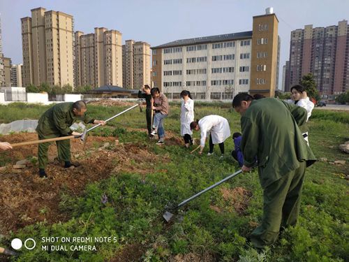 为了帮助荣军病员更好地康复,让他们走进自然、体验生活,在医养结合中心董老师的爱心相助下,我们在医院旁边的医养结合中心申请到一块种植地。步行几分钟后,一行人到达了目的地,值班的老爷爷借给我们锄头等农具。第一次在这片土地上开垦,病员们挥舞着锄具,还不时友善地提醒我们“小心锄头”。他们本应该更好地生活,只是目前不幸患病,离开了所热爱的生活。此时此刻,脚踏着坚实的土地,流淌着劳动的汗水,他们是开心的、愉悦的!