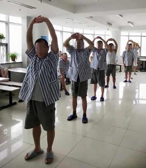 目前,十病区大部分病员都能够积极主动地参加这项运动。印象最深的是病区有个近250斤的大胖子,虽然他话不多,但是每次做操的身影中总有他,看!他扭着胖胖的身躯,很认真地在学在做;一位坐在轮椅上的老病人也跟着音乐摇起了胳膊,虽然动作不是那么标准,但这是他近期唯一愿意参加的活动。
